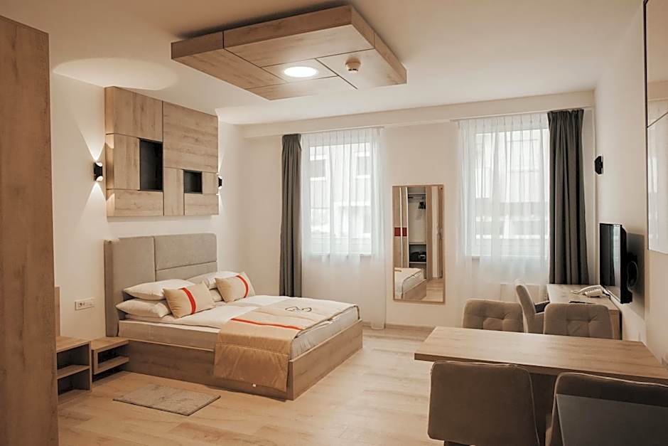 This studio features a living and dining area, a sleeping area and an equipped kitchen.